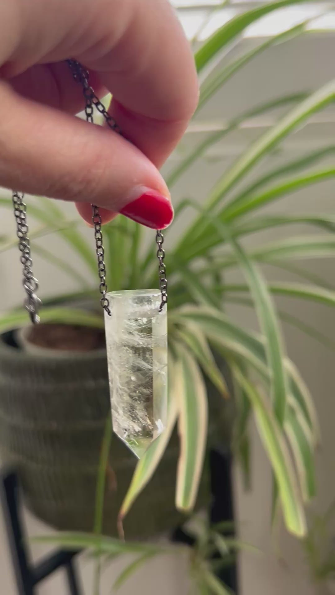 Polished Green Amethyst on Blackened Iron Chain.